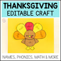 Turkey Craft - Thanksgiving Editable Phonics Craft, Name Craft, Spelling, Math