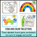 Skills included in the alphabet games pack: